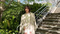 Entertainment 「さすがの美貌」元AKB48の39歳女優「ベージュ&花柄気分」の大人コーデで都心のオアシス満喫「落ち着いた感じもステキ」