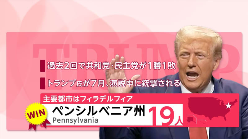 【開票速報】優勢のトランプ氏が激戦州ペンシルベニア州を制し選挙人の合計は265人 過半数270人に迫る ハリス氏は合計194人 2024.11.06 Published by FNNプライムオンライン トランプ陣営の状況開票作業が進むアメリカ大統領選で、共和党のドナルド・トランプ前大統領が、選挙結果を… もっと読む