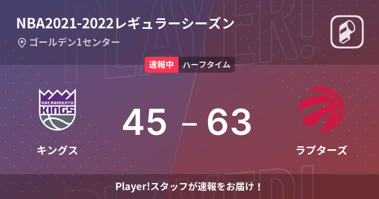 【速報中】キングスvsラプターズは、ラプターズが18点リードで前半を折り返す 2021.11.20 Published by Player! ゴールデン1センターで行われているNBA2021-2022レギュラーシーズンのサクラメント・キングス… もっと読む